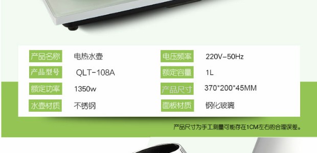 商品名称:QLT/科立泰 1L自动上水抽水壶304不锈钢烧水壶 QLT-T108A