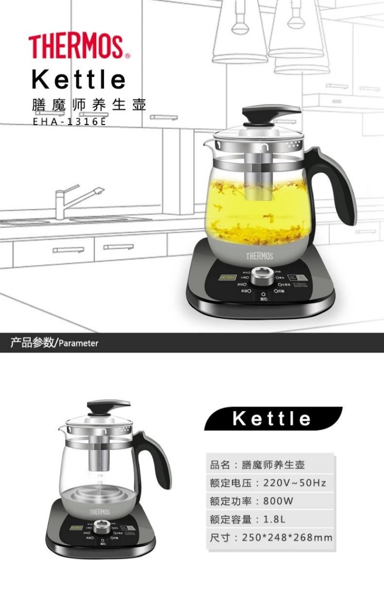 商品名称:膳魔师 养生玻璃壶烧水花茶煮粥煮蛋