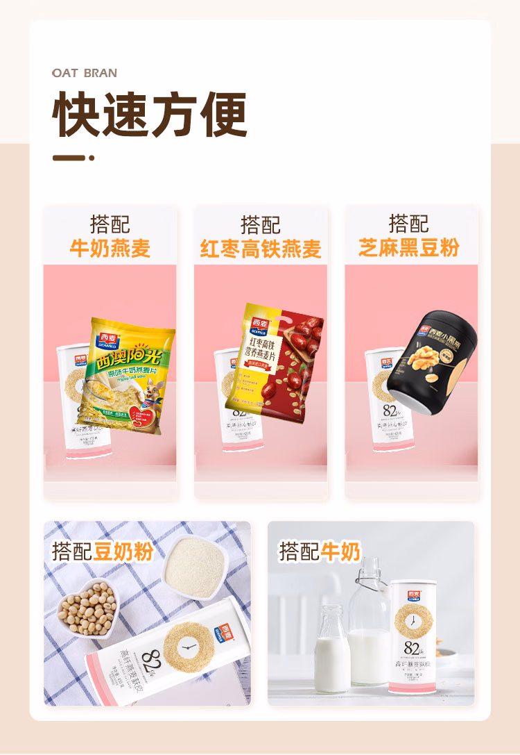 西麦高纤燕麦麸皮450g罐 燕麦片低GI营养代餐无额外添加蔗糖膳食纤维 单位:罐