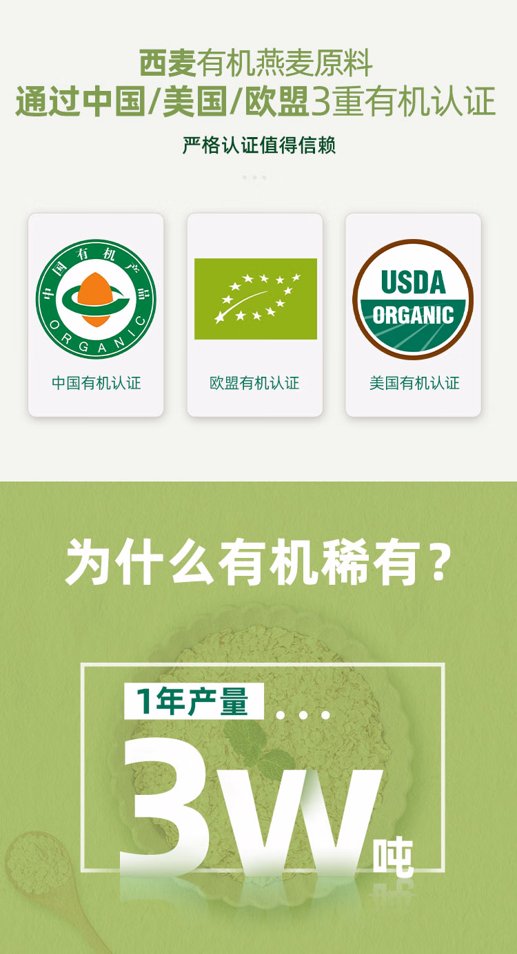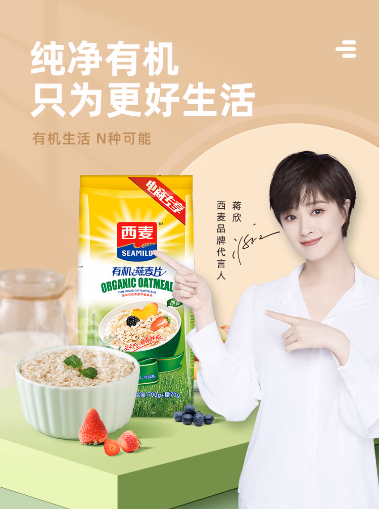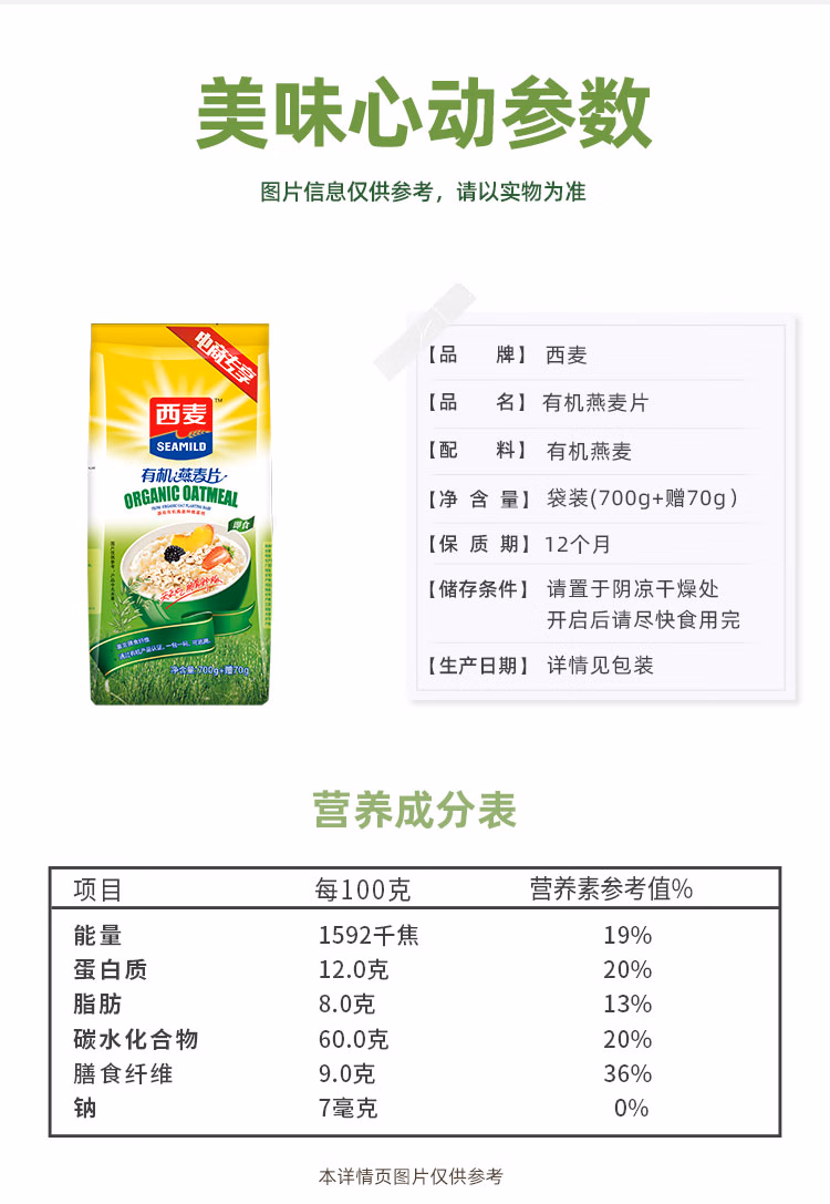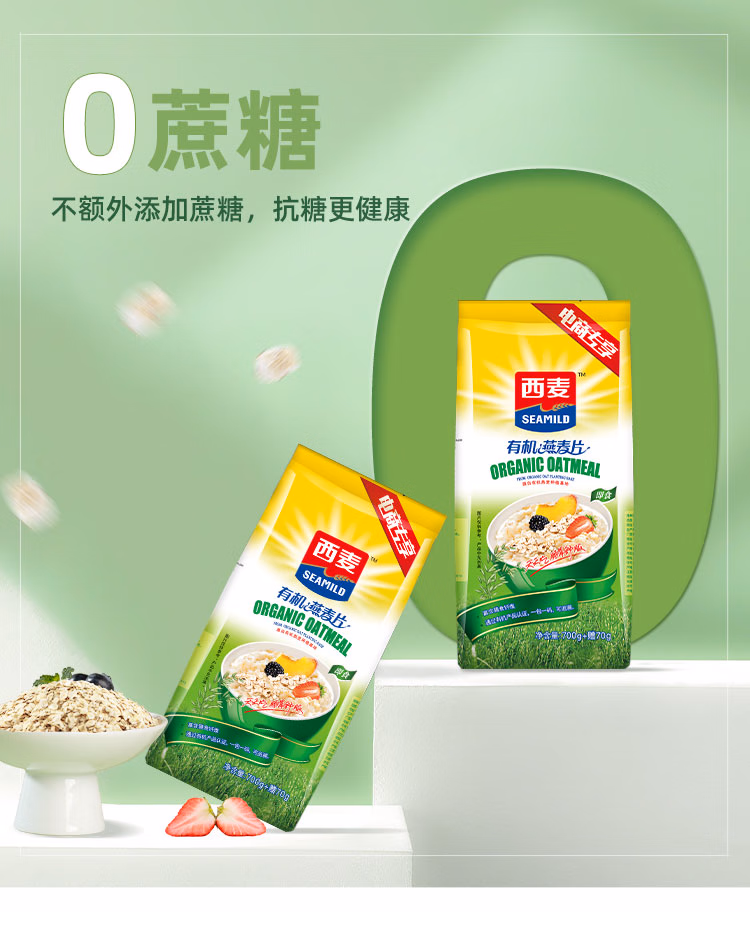 商品名称:西麦即食有机燕麦片770g 营养早餐冲饮谷物膳食纤维无额外添加蔗糖 单位:袋