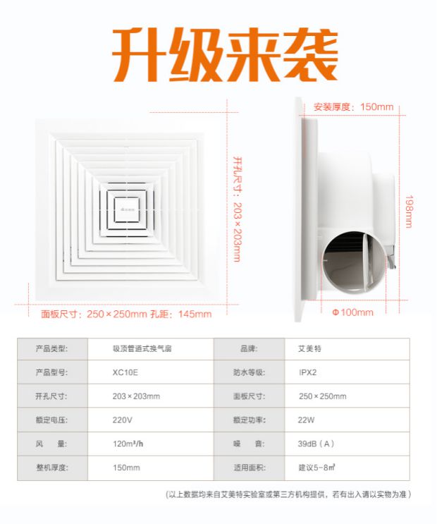 商品名称:艾美特 换气扇吸顶抽风机静音排风8寸 XC10E