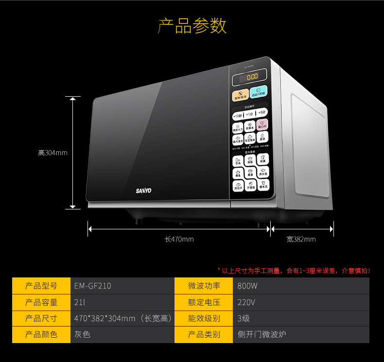 商品名称:三洋/Sanyo 多功能智能魔方家用微波炉 21升 EM-GF210