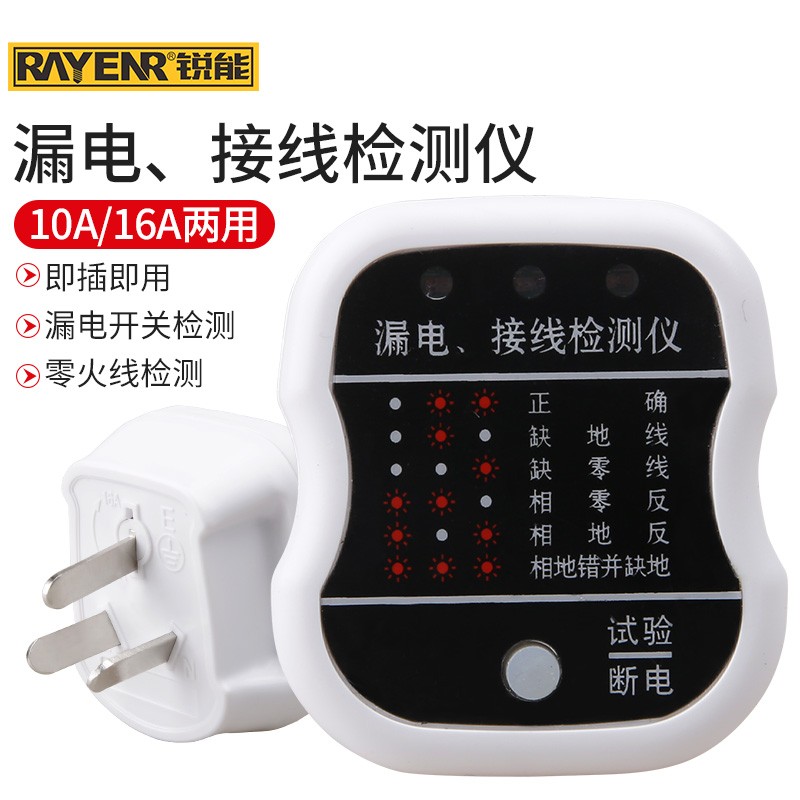 锐能 验电器插座测试仪相位极性漏电检测仪多功能电源检测仪 462603 单位:个