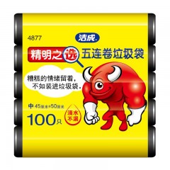 洁成 一次性中号垃圾袋家用垃圾桶塑料袋5卷100只黑色4877