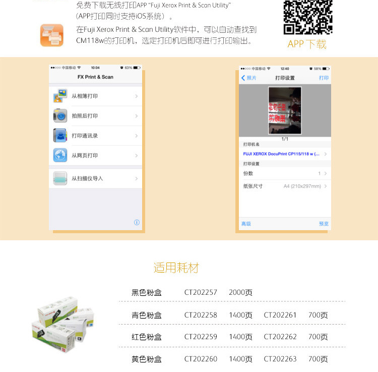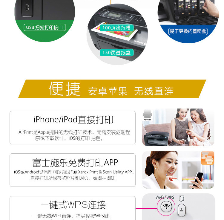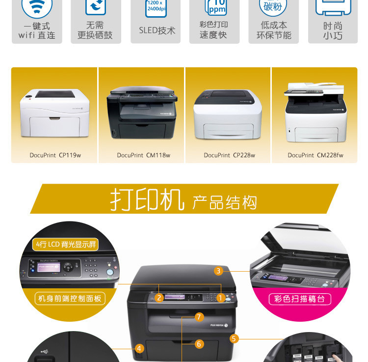 商品名称:富士施乐 彩色激光多功能一体机 三合一无线网络 CM118w