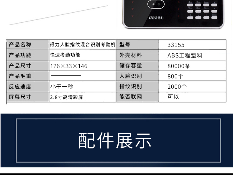 商品名称:得力 人脸考勤机指纹人脸识别 3969Z