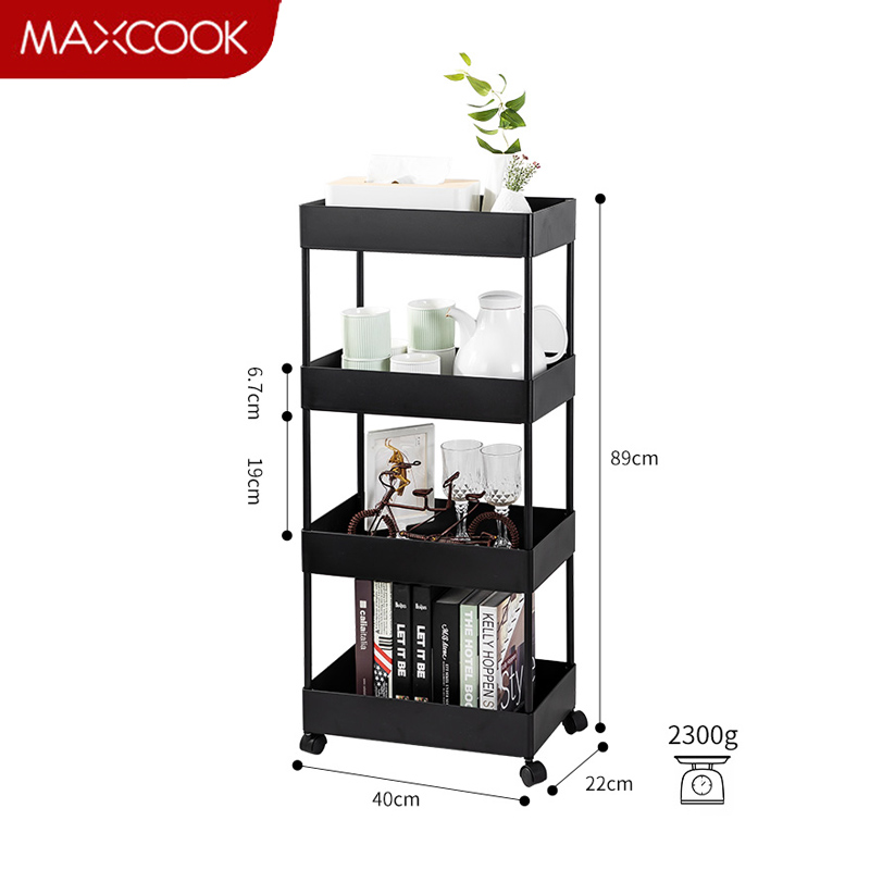 商品名称:美厨(maxcook)厨房置物架 黑色落地四层储物架收纳架橱柜 网篮拉篮层架MCWA984 单位:个