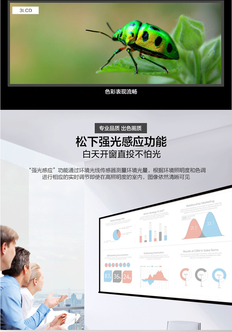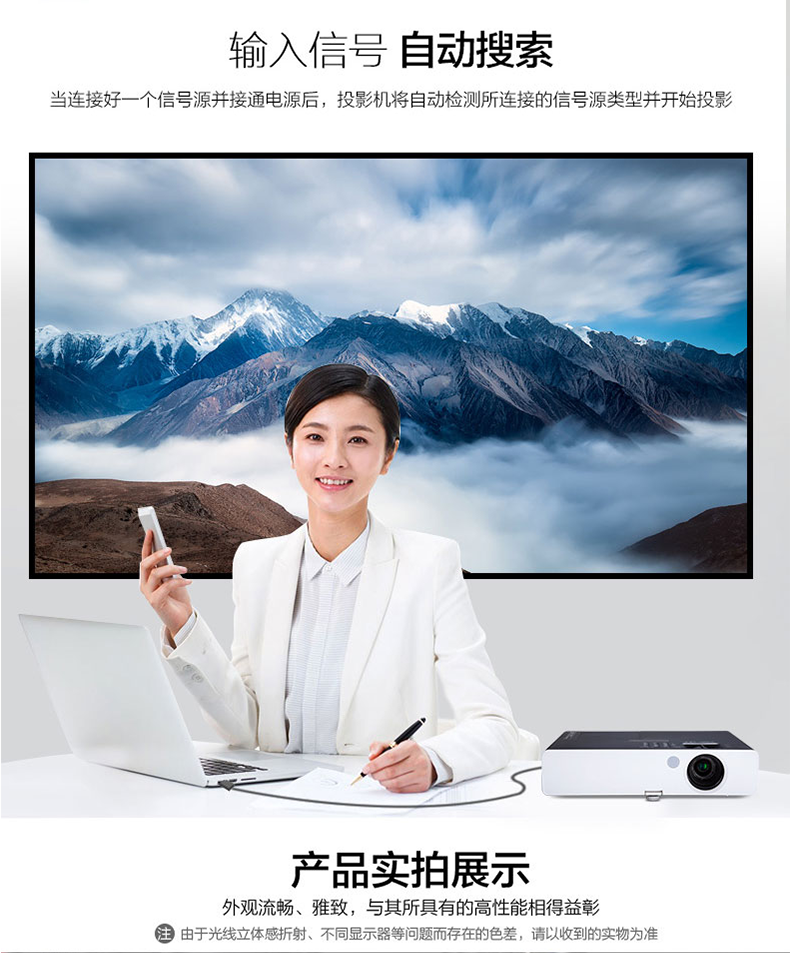 果然是白天可以毫无压力的用,在办公室的白墙上直接投影,都不用拉窗帘,很清晰,像素也够高,使用非常方便。