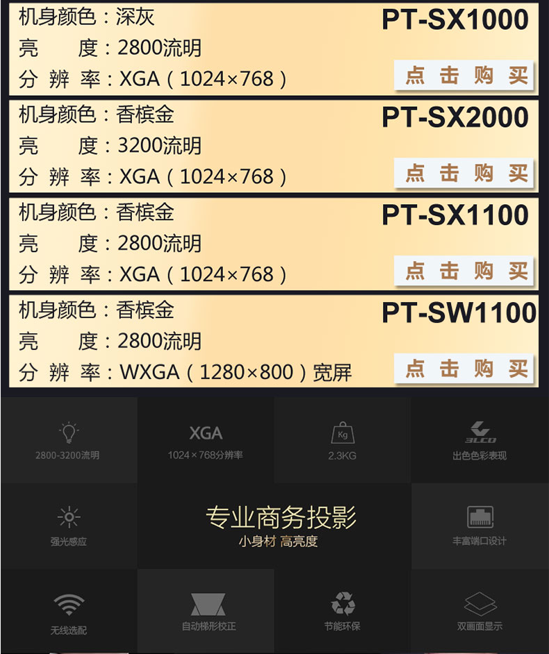 商品名称:松下/Panasonic 办公培训投影仪高清1080p教学家用投影机 PT-SX1000