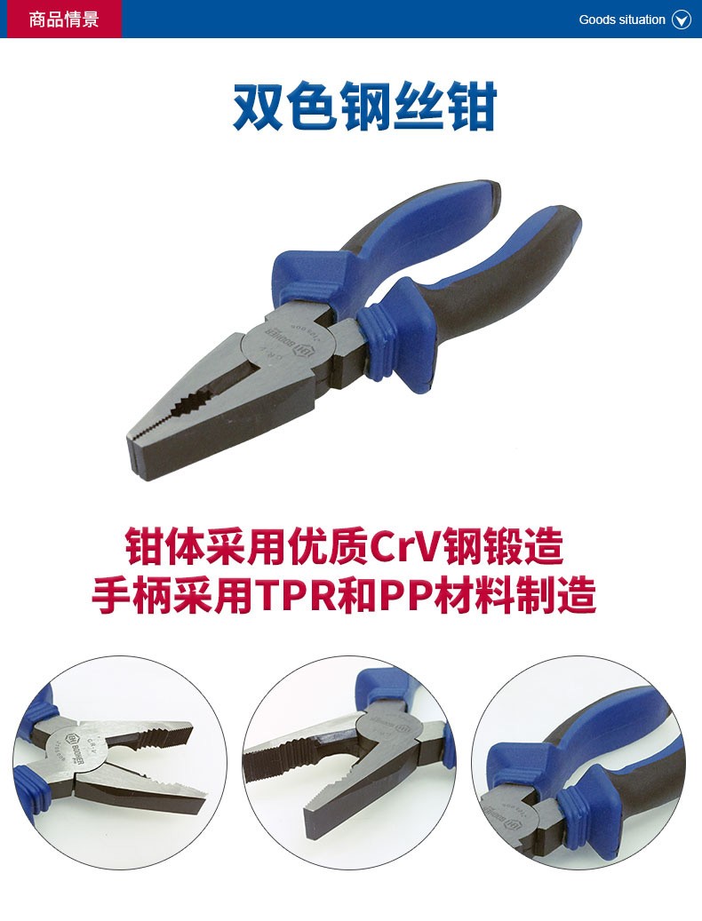 Booher宝合手动工具 双色CrV钢丝钳BH2105006/07/08 6"~8"可选 BH2105006 150mm(6英寸) 单位:把