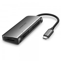 绿联CM121 Type-C扩展坞 USB-C转HDMI/HUB/网卡/读卡器带PD50516