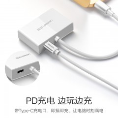 绿联US163 Type-C扩展坞 USB-C转HDMI+USB3.0带PD供电30377