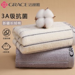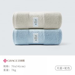 洁丽雅(grace) 毛巾纯棉A类抗菌长绒棉毛巾洗脸巾加厚成人家用洗澡巾柔吸水毛巾 2条装(浅驼+蓝色) 单位:组