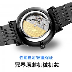 冠琴 手表 全自动机械表时尚潮流男表防水真皮男士超薄款精钢带