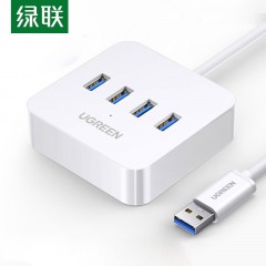 绿联 USB3.0分线器 高速4口HUB扩展坞集线器分支器 一拖四转换器带电源接口 CR118 30221 3.0HUB【4口分线路1*1.5米白色】单位:个