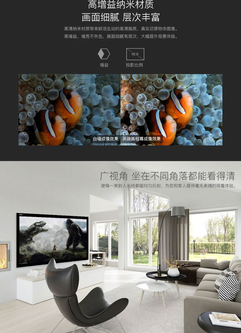 商品名称:IN&VI/英微 GHK 宽边高清软白 16:9画框幕布