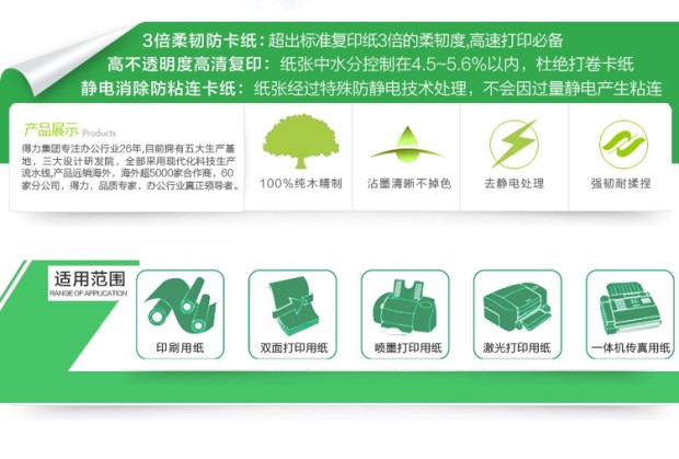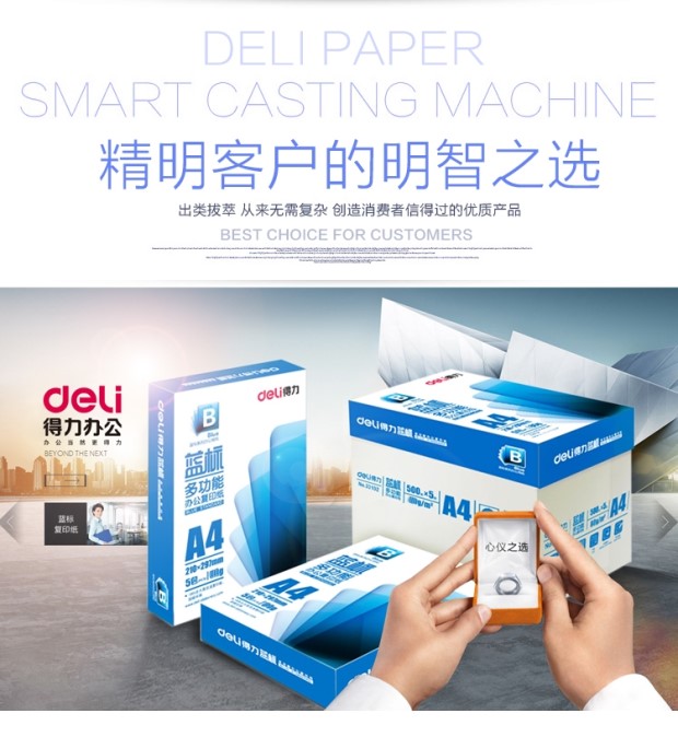 商品名称:得力 蓝标70g 80G 打印复印纸A4纸办公用纸5包/箱
