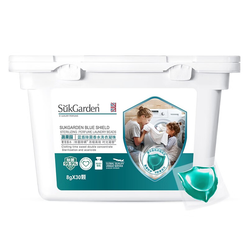 商品名称:蔬果园(SukGarden)除菌除螨香氛护色洗衣凝珠5倍浓缩8倍洁净柔顺 除菌洗衣凝珠30颗【洁净凝香】 单位:盒