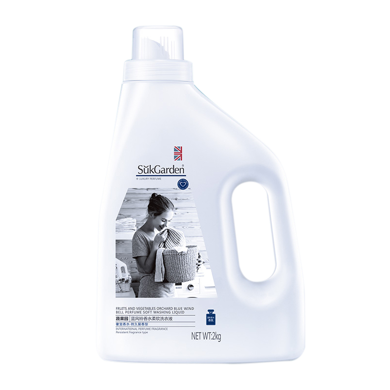 商品名称:蔬果园 蓝风铃香水洗衣液2kg 机洗专用香味持久留香洁净增香型家庭套装 单位:桶