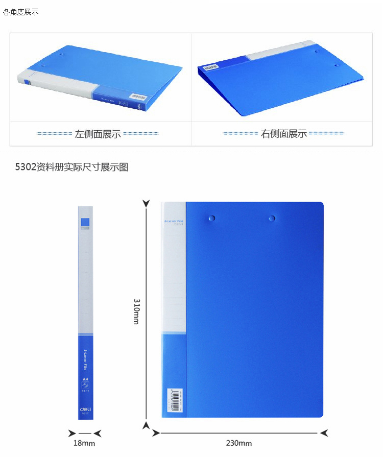 商品名称:得力 文件夹 A4单双强力长押夹加插袋实用文件夹资料夹5302