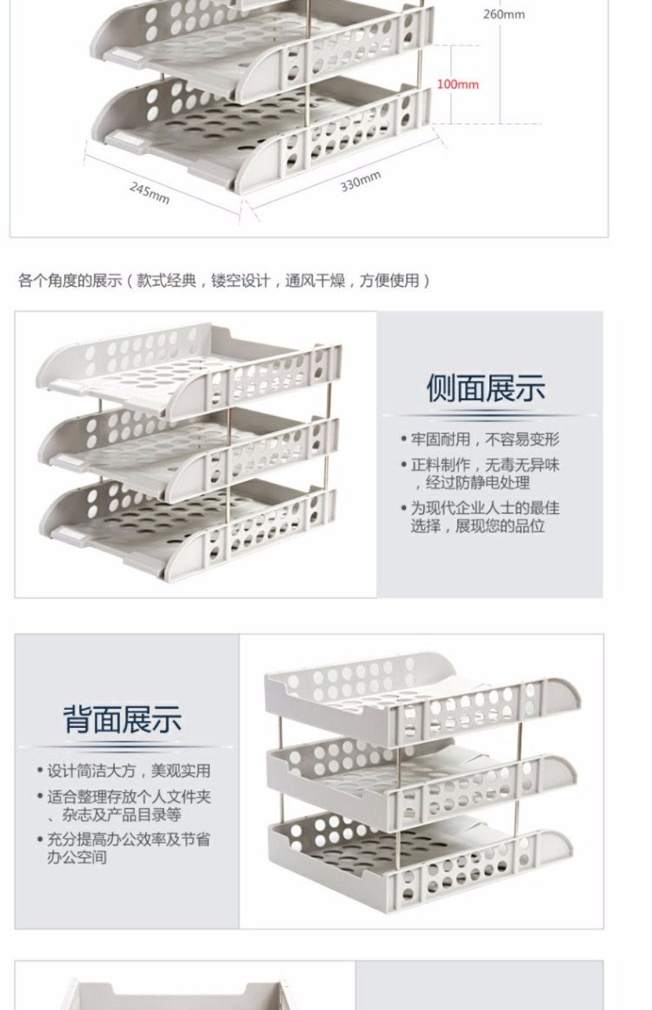 商品名称:得力 9217三层商务文件座书架收纳盘金属支架桌面办公用品文件框