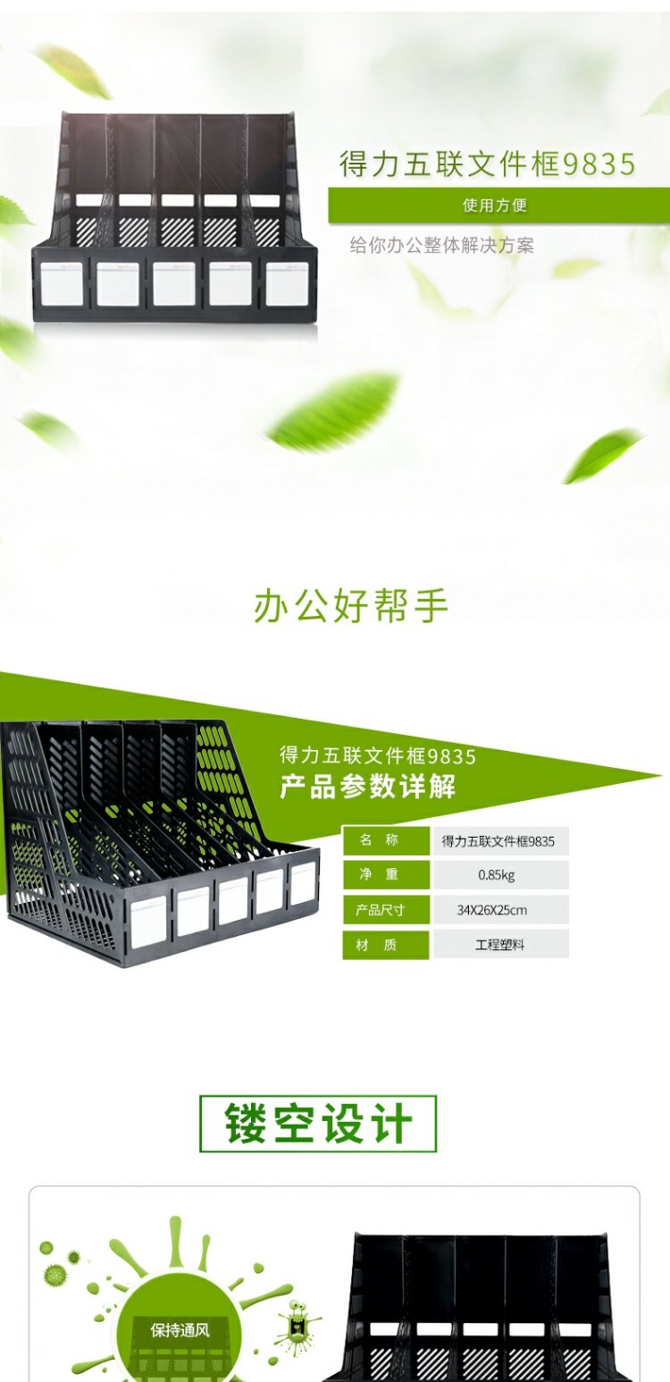 商品名称:得力 9835五栏文件栏文件框文件架资料架文件座材料整理架收纳盒框