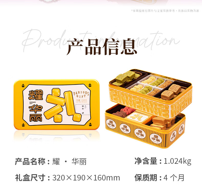 商品名称:锦华礼锦华耀华丽糕点礼盒1024g双层铁盒年货糕点点心大礼包 单位:盒