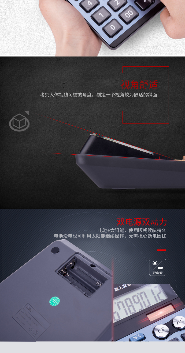 商品名称:得力 1557双电源语音计算器太阳能语音计算机办公家用财务计算器