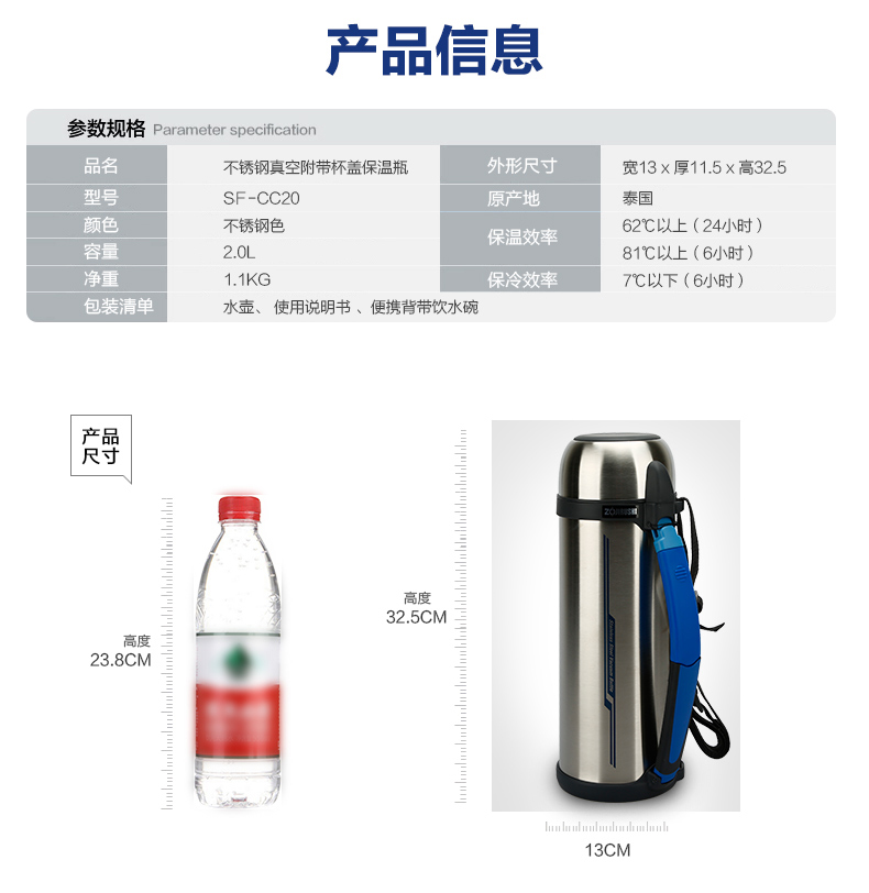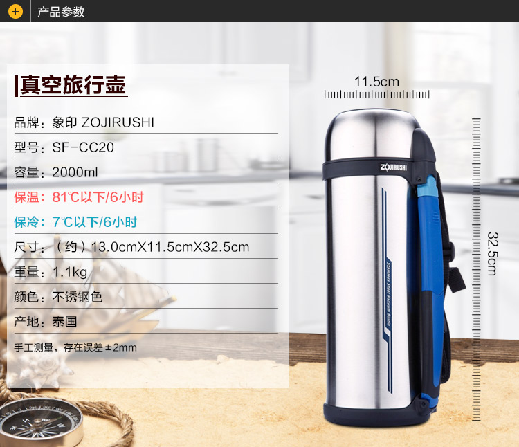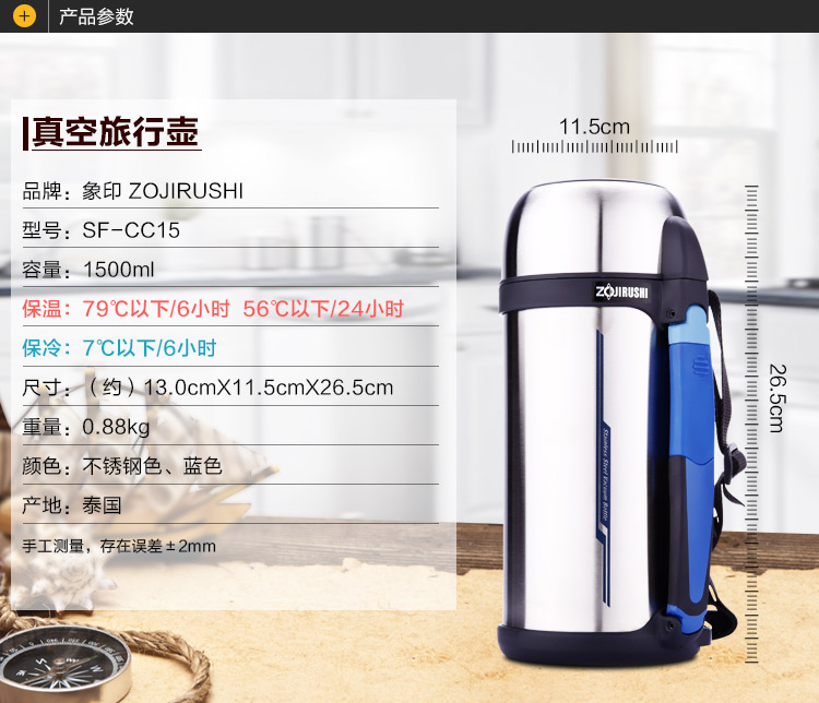 商品名称:象印 大容量家用车载旅行用保温水壶SF-CC15 20