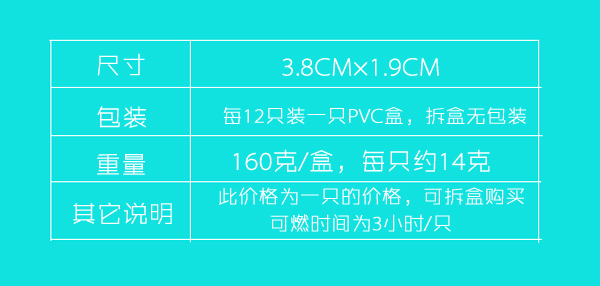 商品名称:国产 无烟香薰熏香婚礼生日浪漫蜡烛 拼图煮茶蜡烛 蓝色 整盒价