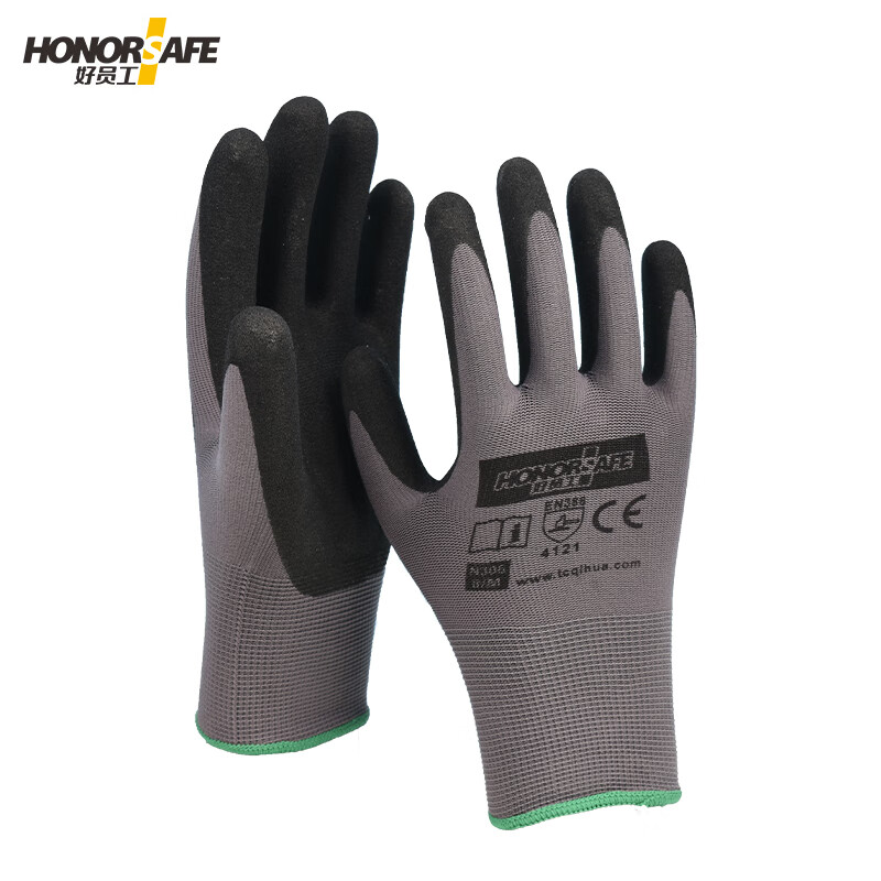 商品名称:好员工 N304 13针尼龙黑丁腈磨砂 耐磨透气舒适防滑涂层手套 单位:副