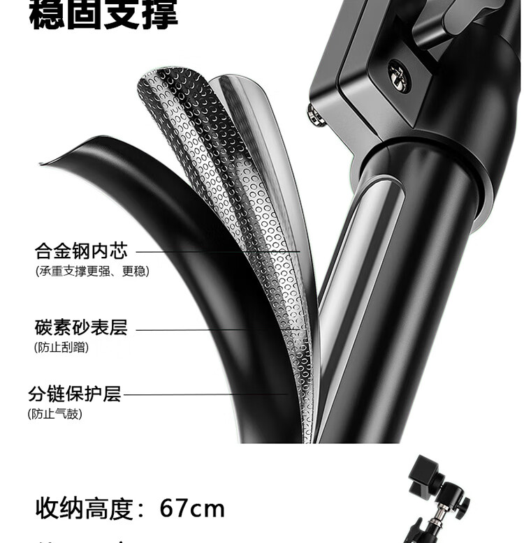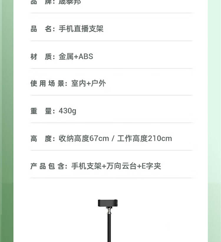 商品名称:晟泰邦 手机支架落地直播三脚架 桌面便携户外伸缩折叠固定三角支撑架【2.1米】单位:个