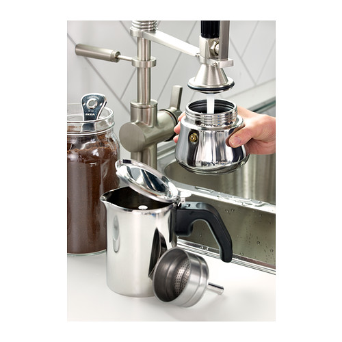 - 摩卡壶一直被誉为咖啡壶设计的典范。底座的水沸腾后释放出蒸汽,通过壶中的导管向上穿过过滤器里面的咖啡粉末萃取咖啡,然后在向下冷却并凝结,提取咖啡的方式非常科学,只要您使用正宗的咖啡豆,咖啡的味道一定美妙绝伦.....