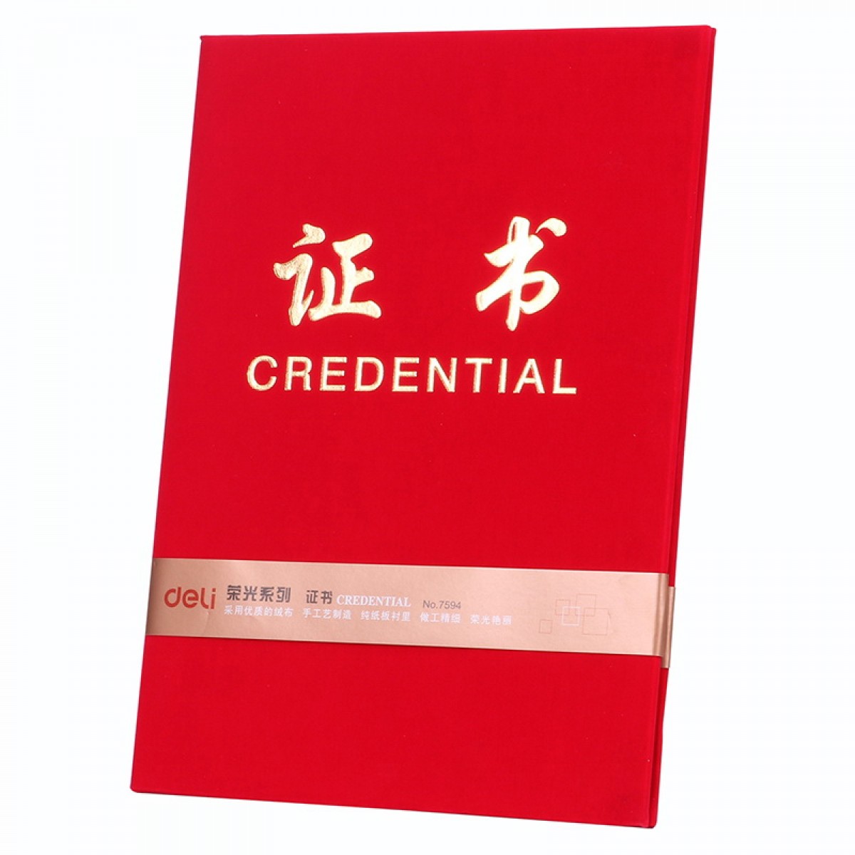 商品名称:得力 7594荣光系列证书 6K8K12K证书 绒布浮雕工艺 奖状 红色