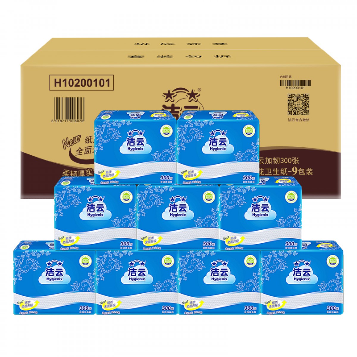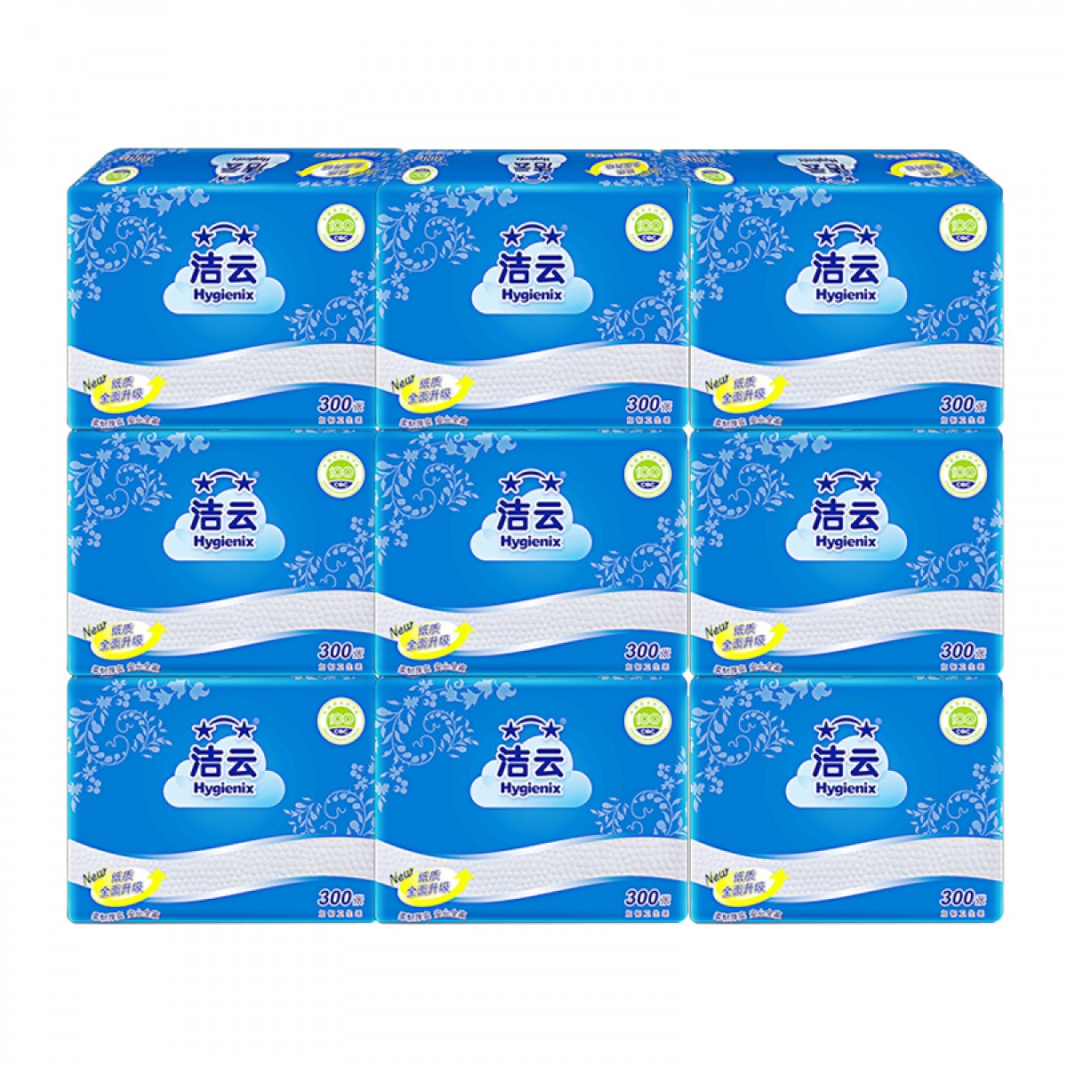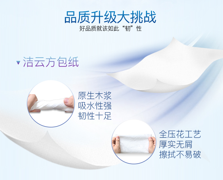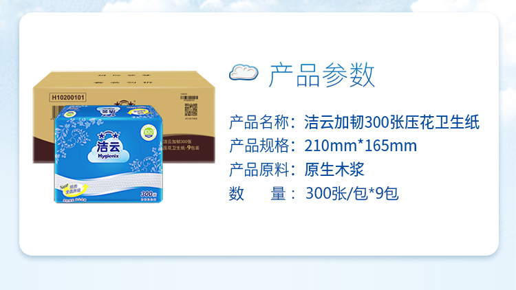 商品名称:洁云 300张卫生纸压花平板纸巾加韧圆点9包装家用厕纸手纸方包纸