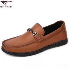 七匹狼 男鞋时尚休闲平底套脚耐磨头层牛皮软底软面真皮男鞋子