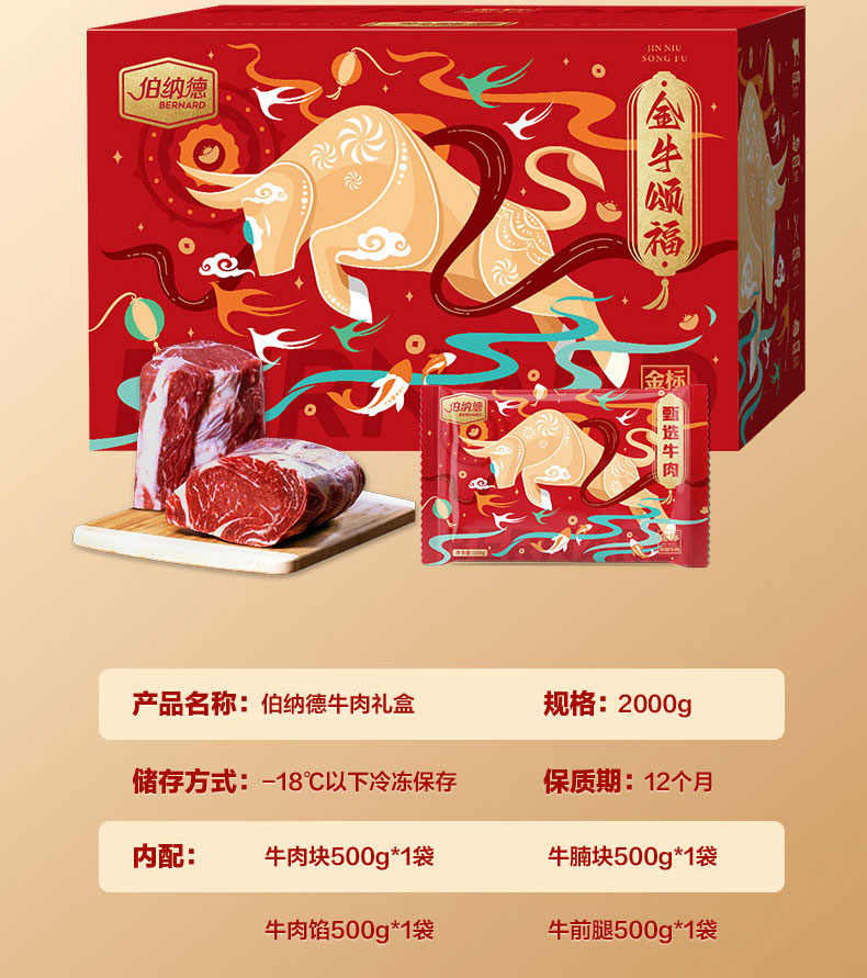 伯纳德 纯牛肉礼盒-优选2000g(顺丰冷链)