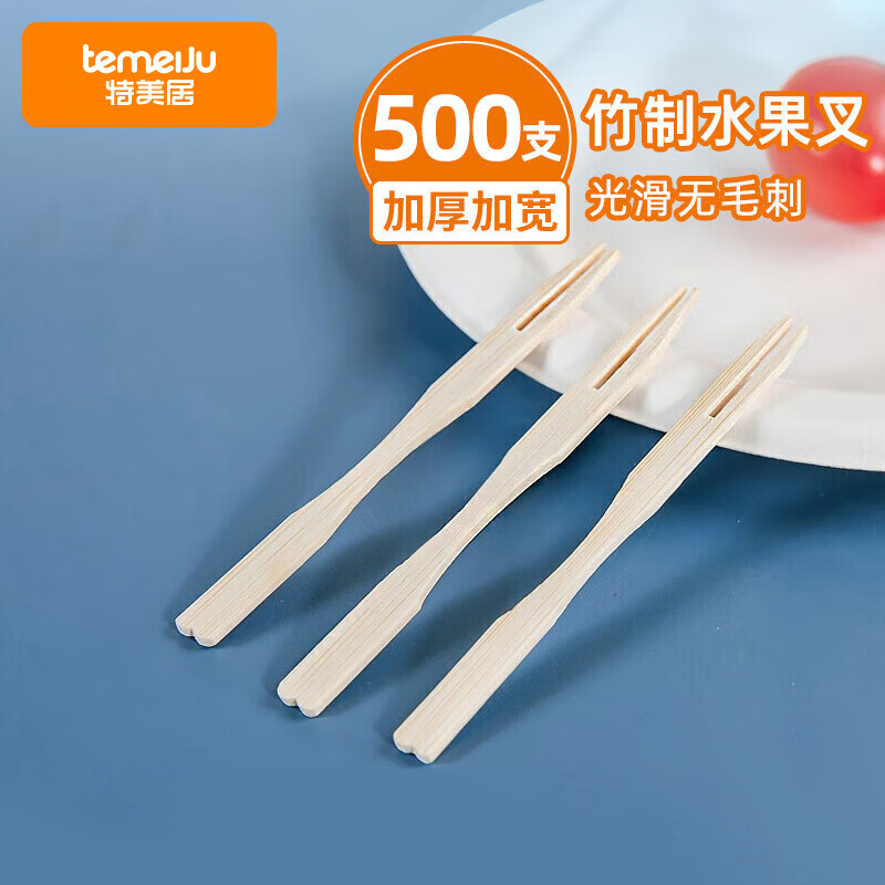 特美居 水果叉一次性叉子加厚点心叉月饼蛋糕竹制外卖打包环保木叉500只 单位:包