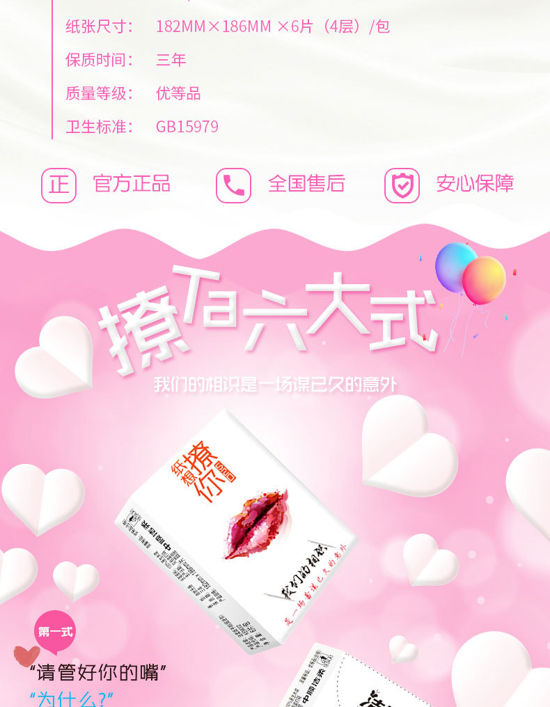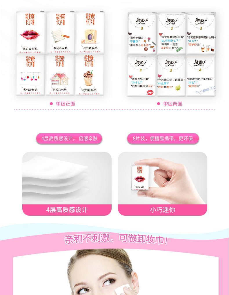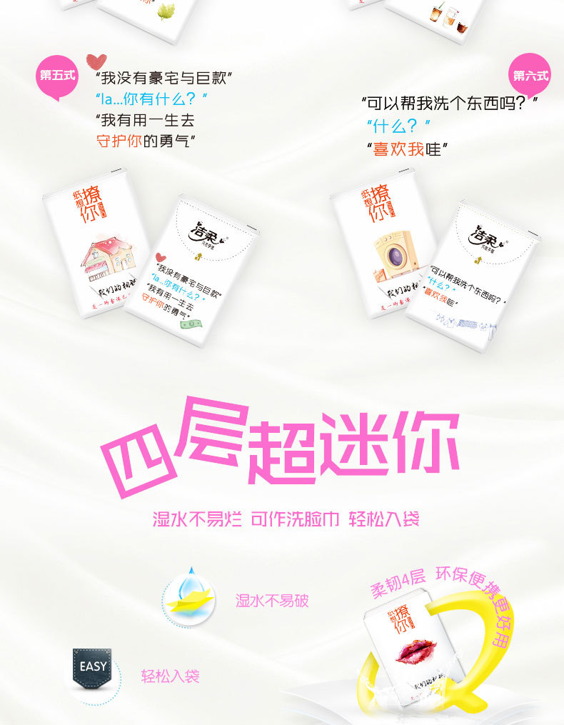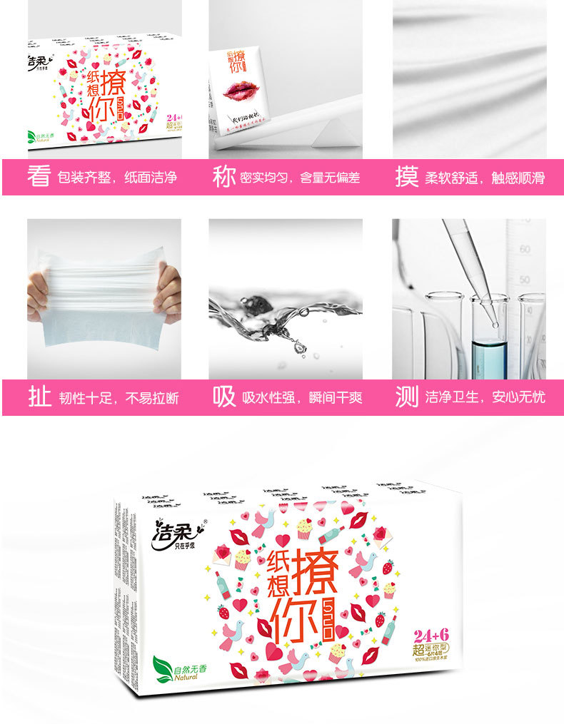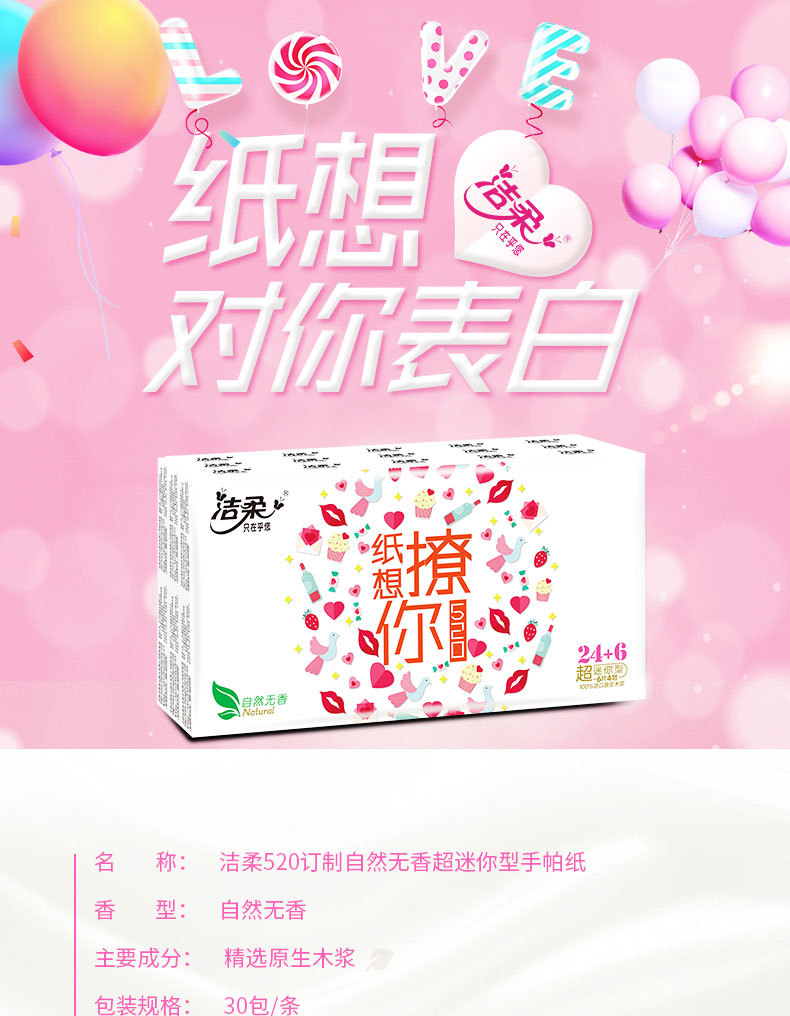 商品名称:洁柔 手帕纸巾520表白纸想撩你无香4层6片餐巾纸30包