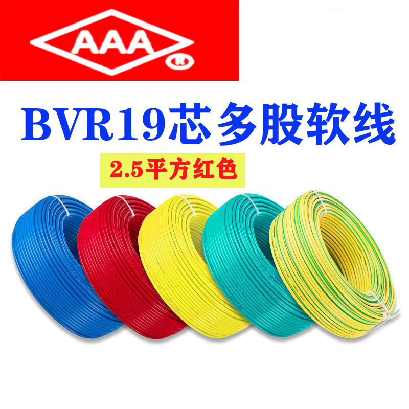 AAA广东国标电缆线纯铜2.5平方红色 火线 [100m/卷] 单位:卷