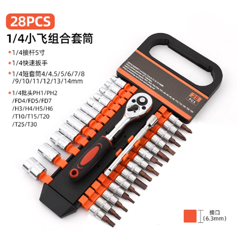 斯弗 棘轮套筒扳手套装多功能外六角家用快速棘轮扳手套管汽修套筒配件 直柄24齿1/4小飞28件套 单位:套