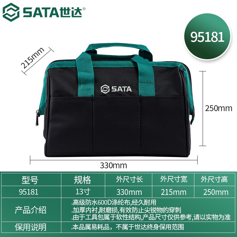 商品名称:世达(SATA) 工具包多功能维修储物包手提包单肩包电工包 95181多尺寸可选 95181工具包13寸 单位:个