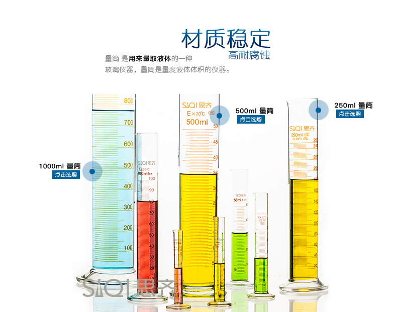 商品名称:思齐 高硼硅玻璃量筒 清晰刻度 透明玻璃 化学实验室仪器 50ml