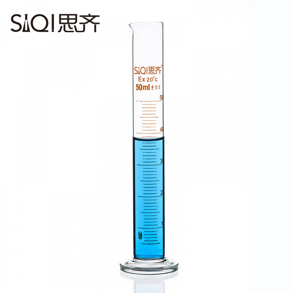思齐 高硼硅玻璃量筒 清晰刻度 透明玻璃 化学实验室仪器 50ml