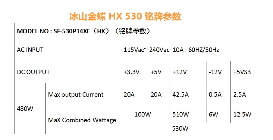商品名称:振华冰山金蝶 530W战斗版 强劲游戏动力 支持背线