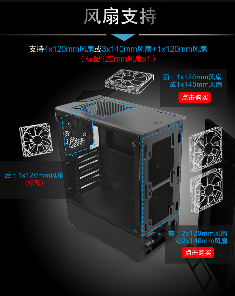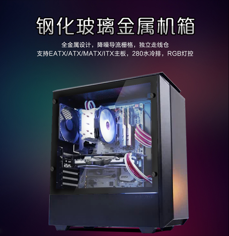 商品名称:追风者 P300 RGB钢化玻璃侧透水冷电脑主机箱 台式机家用