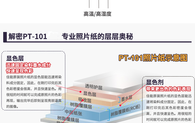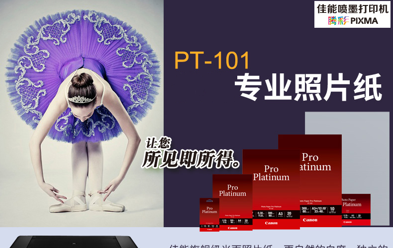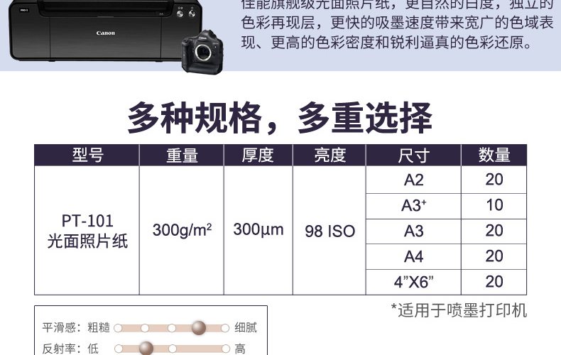 佳能 原装 PT101 相纸6寸 4X6 A4 A3+ A2专业照片喷墨打印机照片纸适用PRO500 PRO1 Pro10 PRO100 TS8180等