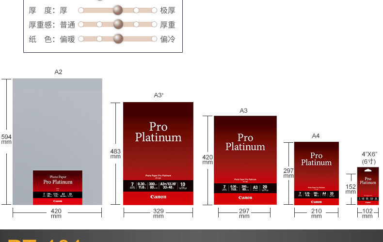 商品名称:佳能 原装 PT101 相纸6寸 4X6 A4 A3+ A2专业照片喷墨打印机照片纸适用PRO500 PRO1 Pro10 PRO100 TS8180等