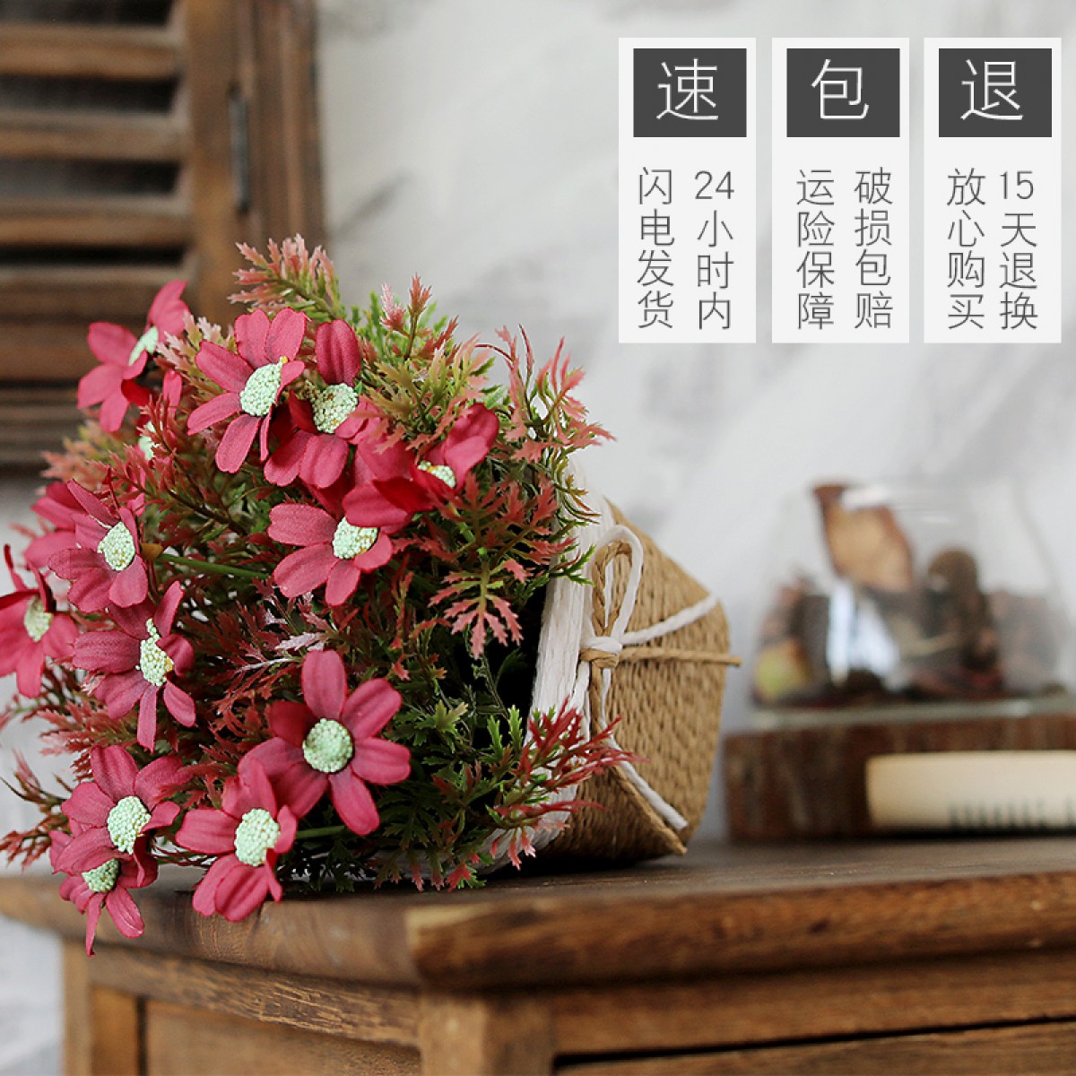 商品名称:国产 办公室花卉摆件电视柜插花干花餐桌仿真花套装假花摆设家居装饰品