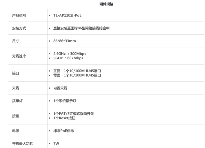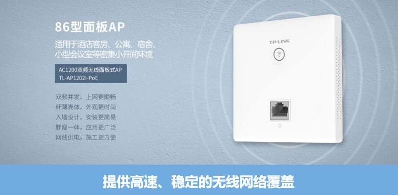 商品名称:TP-LINK TL-AP1202I-PoE 86型AC1200双频无线面板式AP